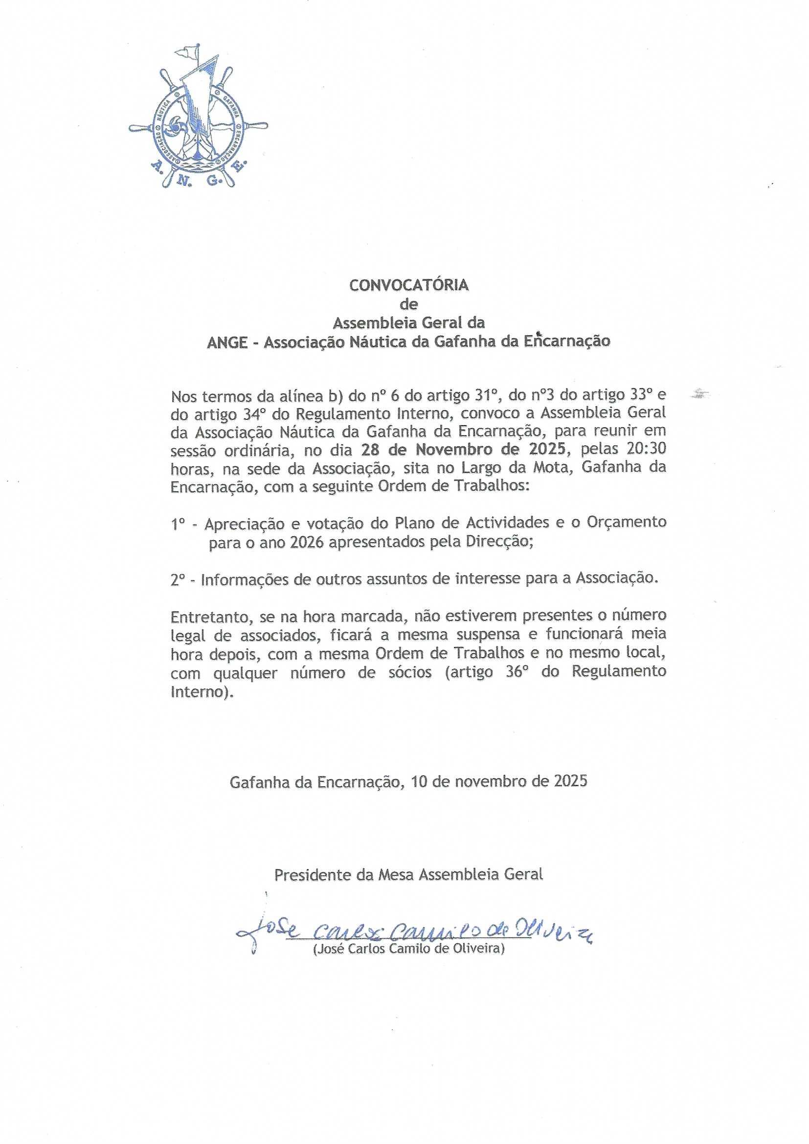 20:44h - 19/11/2025 Convocatória de Assembleia Geral da Associação Náutica da Gafanha da Encarnação